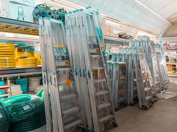 Nel nostro ampio magazzino e negozio di ferramenta vendiamo diversi modelli di scale (pieghevoli e dritte) e trabattelli professionali conformi al D.Lgs 81/08 per la sicurezza sul lavoro.